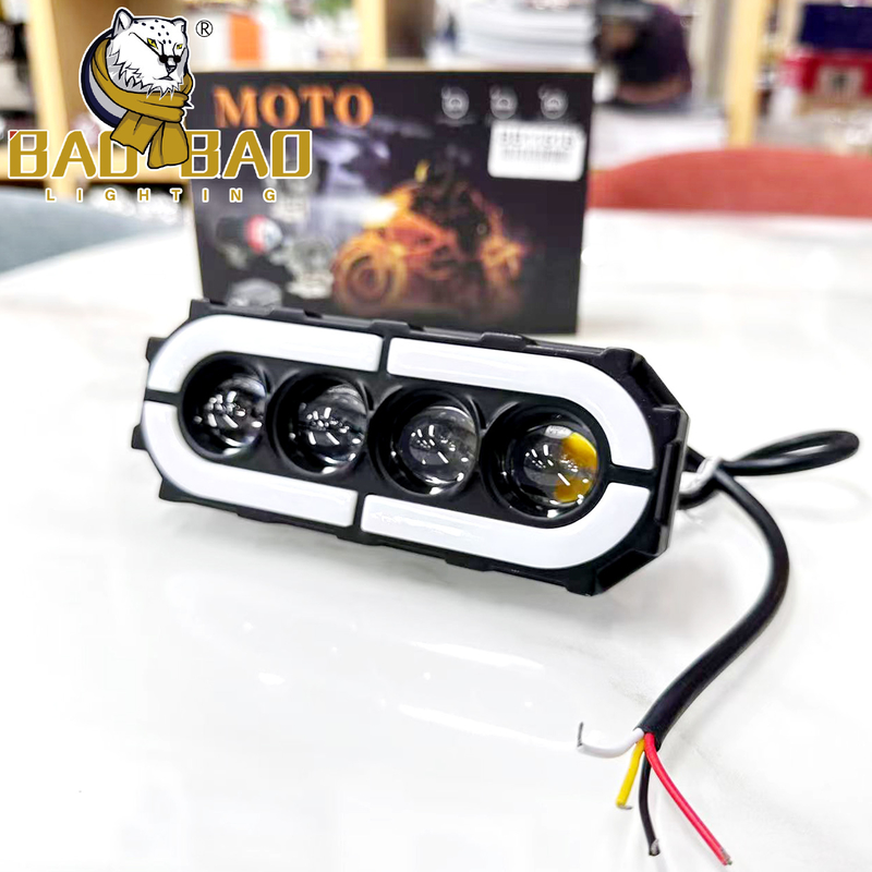 ไฟตัดหมอก LED สำหรับรถจักรยานยนต์ FRGB สีขาว เหลือง แฟลช 4 ดวงตา 4 เลนส์ อะลูมิเนียม หลายสี